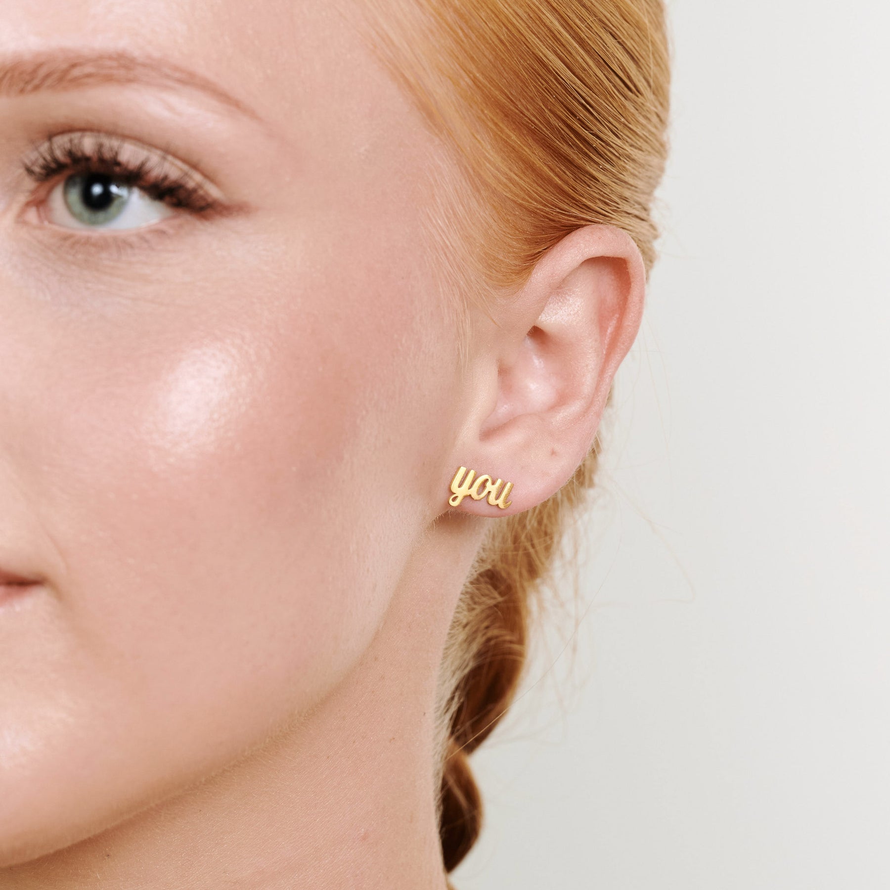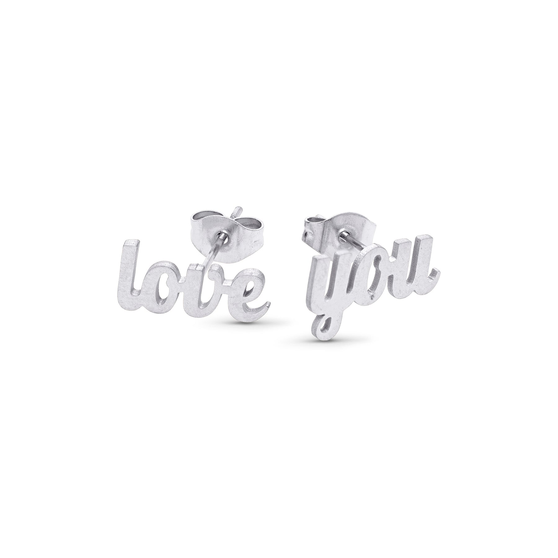 Uttrykk deg med disse "Love You" øredobber. Med den sjarmerende "Love You"-innskriften, er disse studs i rustfritt stål vannbestandige og motstandsdyktige mot misfarging. Tilgjengelig i sølv & gull for å passe din stil og dine behov.