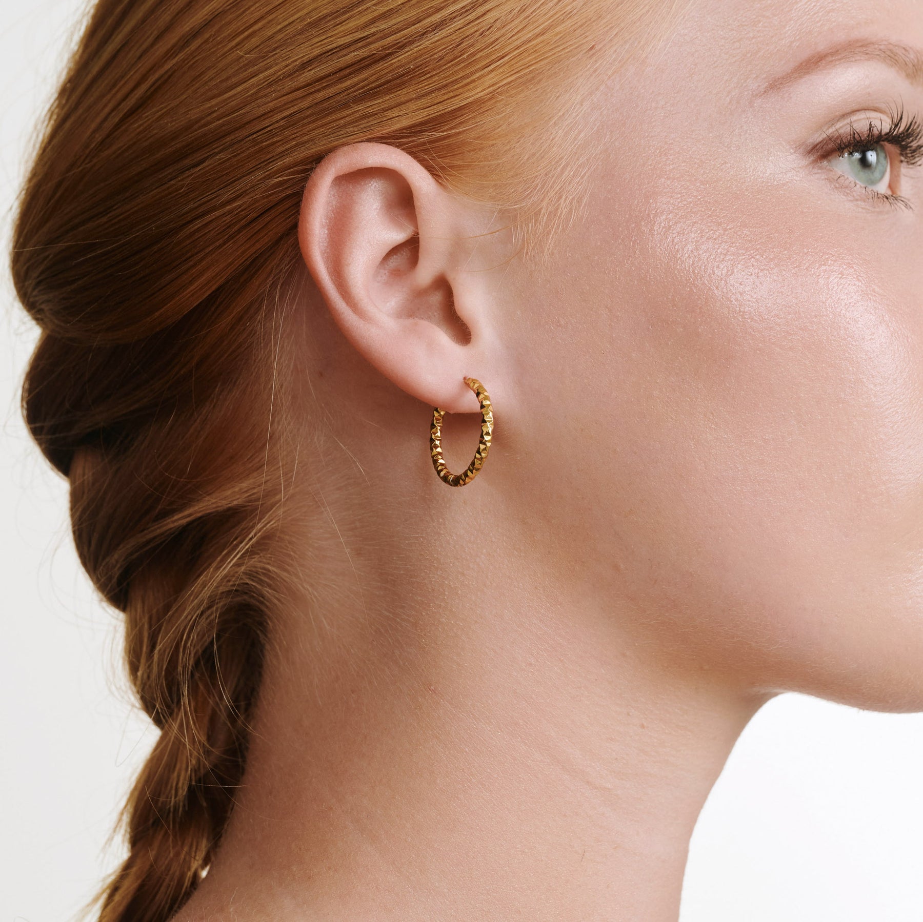 Moderne tekstur med denne strukturerte ørepyntdesignen. Disse unike rustfrie stålringene har et intrikat strukturelt design, er vannavstøtende og oksiderer ikke, for en kunstnerisk touch. Tilgjengelig i sølv & gull for å passe din stil og dine behov.