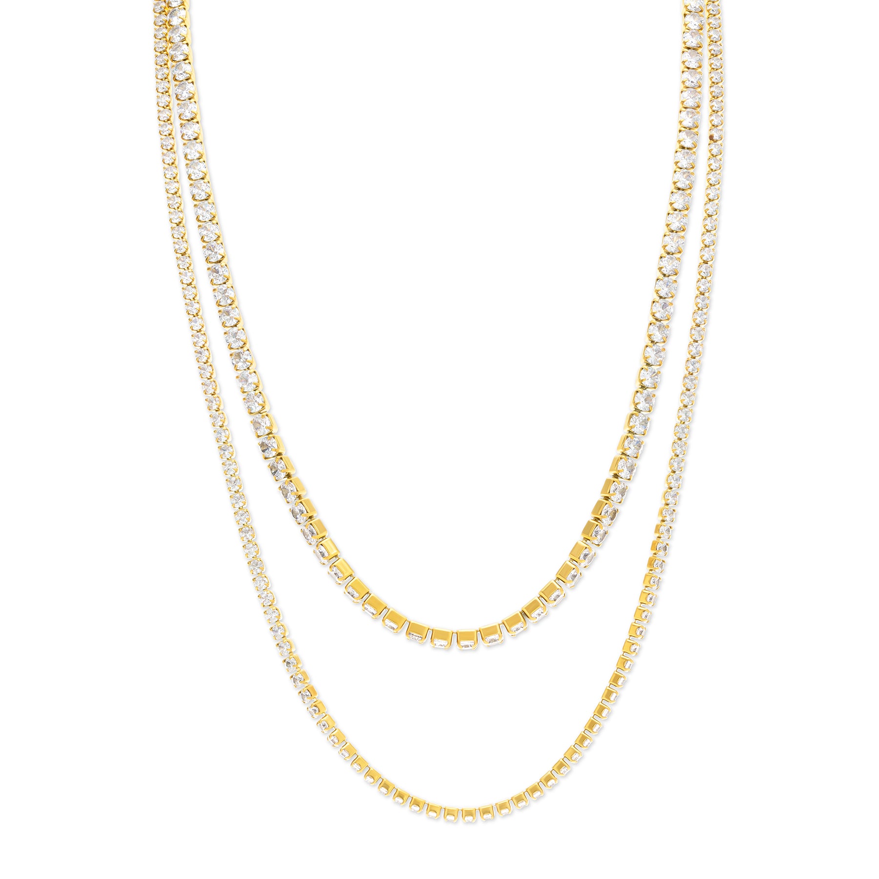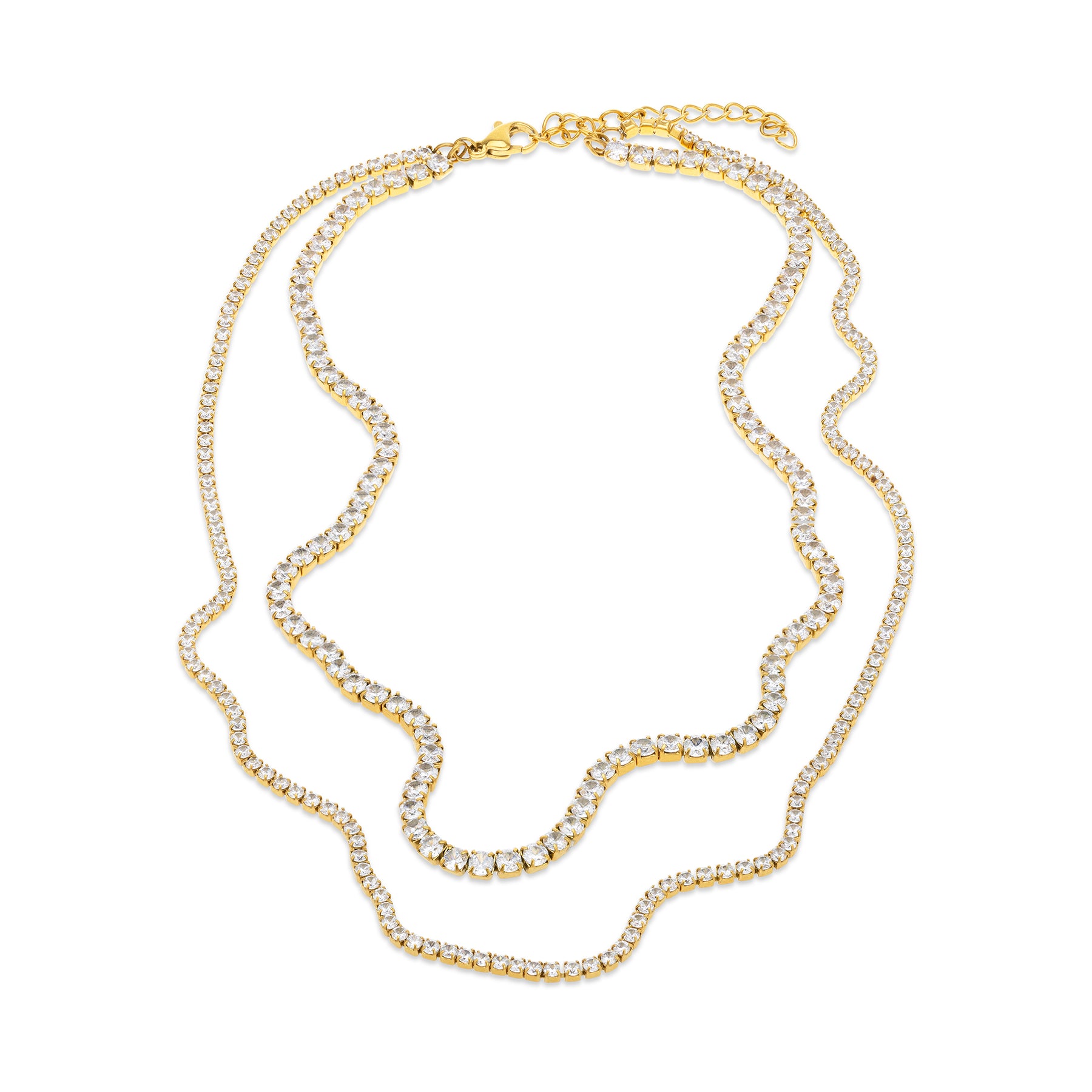 Diskret glans med dette krystallhalskjedet. Dette delikate halskjedet i rustfritt stål har to kjeder dekorert med krystaller, med en tennisarmbånd-følelse. Det er vannavstøtende og oksidasjonsfritt for raffinert eleganse.