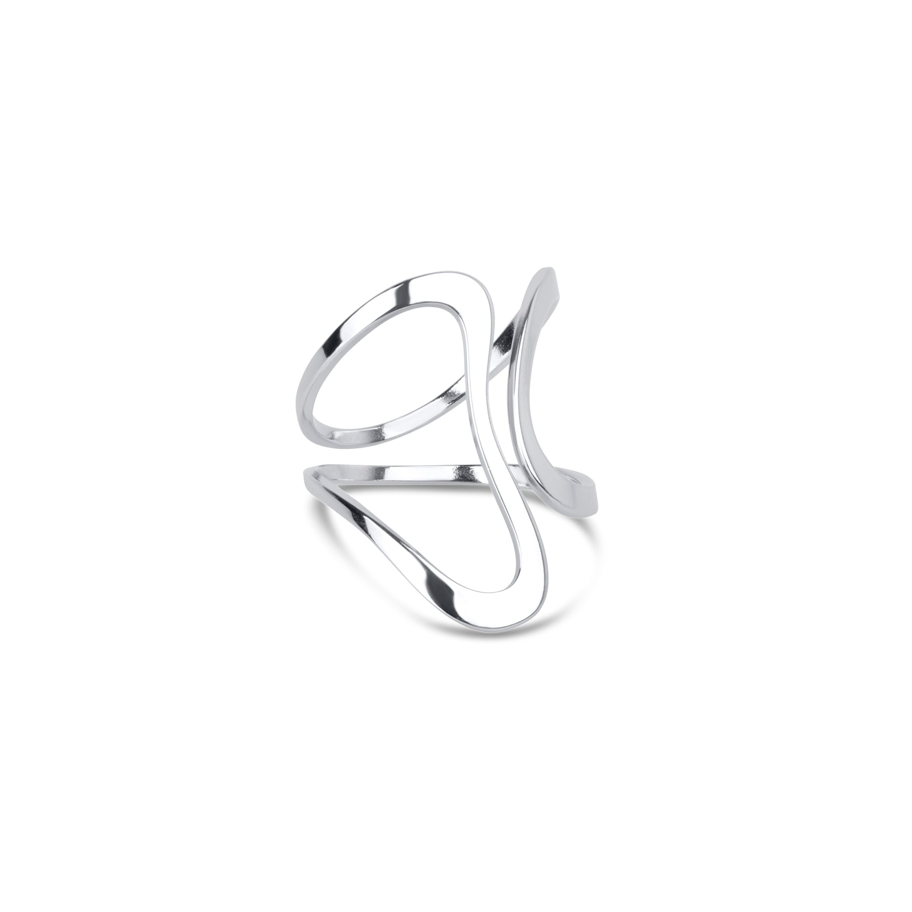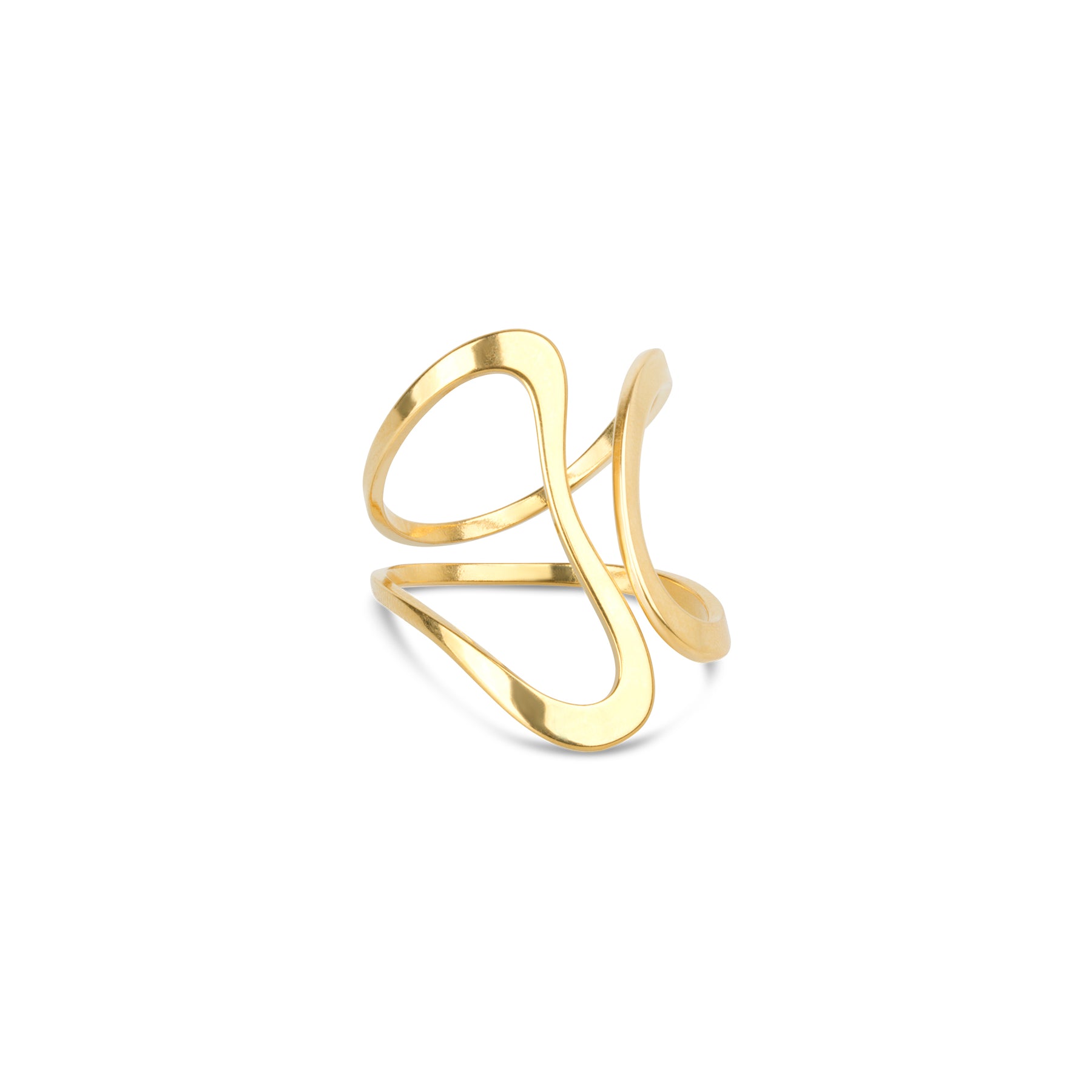 Minou-ringen er laget i vannbestandig rustfritt stål med et unikt abstrakt design. Tilgjengelig i sølv og 18k gullbelagt – moderne, kunstnerisk og lett å bære.