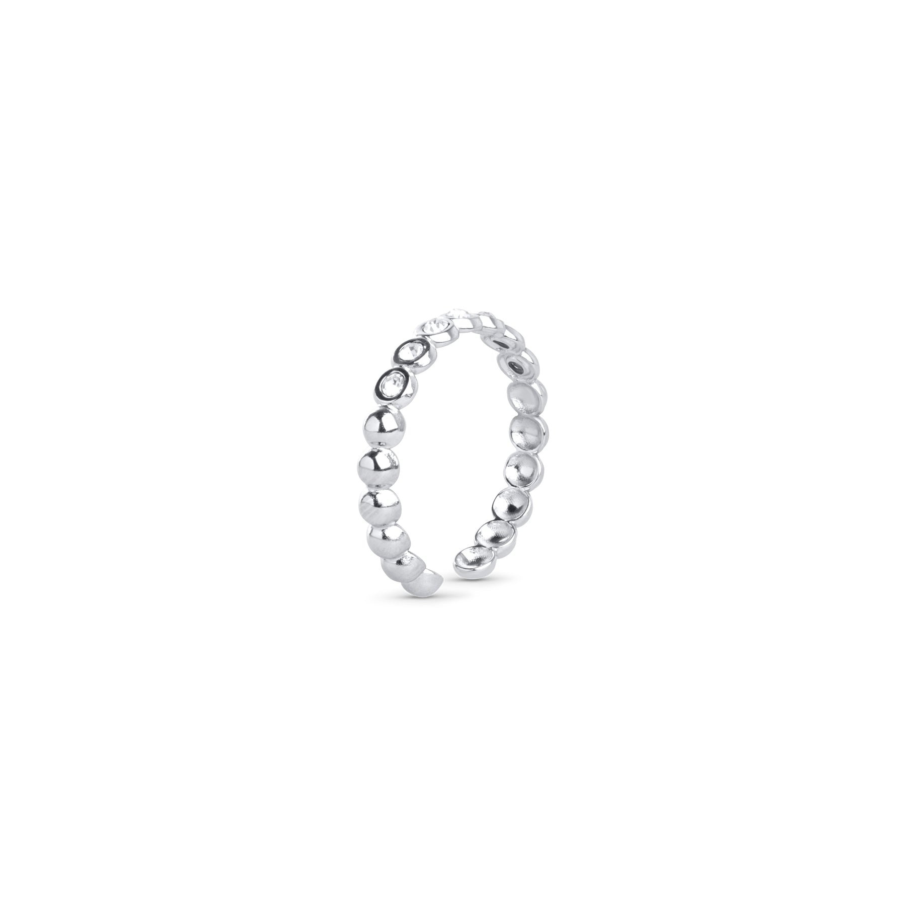 The Pernilla ring is crafted in waterproof stainless steel with a bold, textured band set with sparkling crystals. Available in silver and 18k gold plating.
